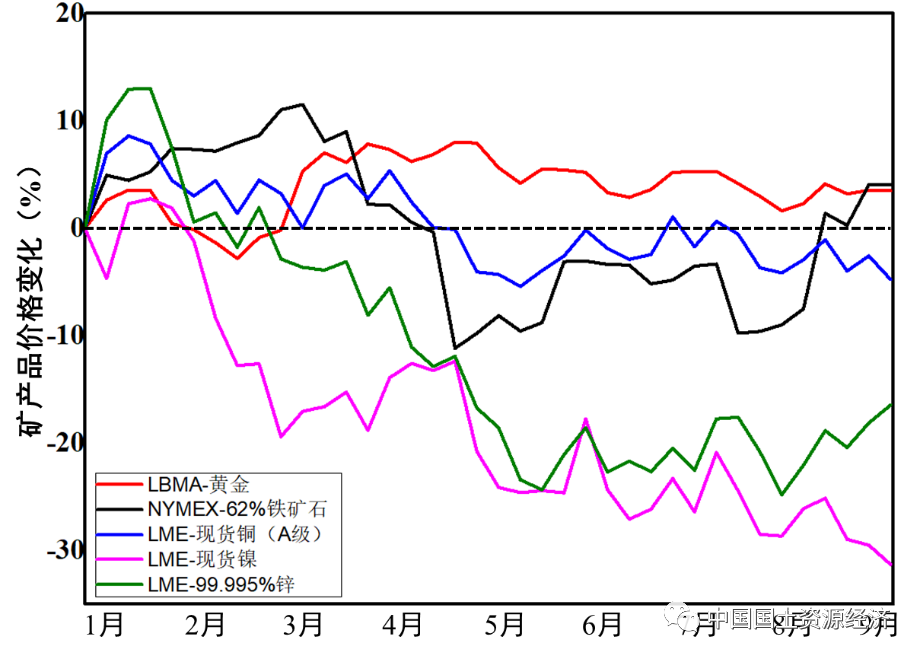 图1 2023年1月—9月全球大宗矿产品价格变化