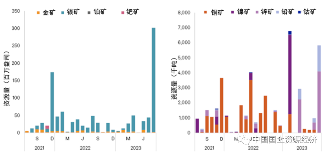 图7 2021年7月—2023年8月全球矿业公司初始资源量公告