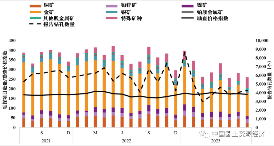 全球矿业公司钻探项目数量和报告钻孔数均处于较低水平。